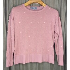 Womens Sweater pink pearls Lng Sleeve Crew Neck Size L