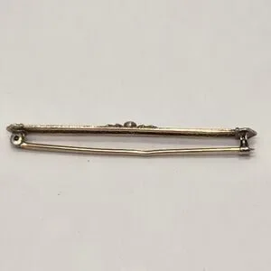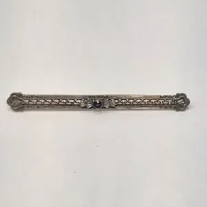 Art Deco Antique 10k White Gold Filigree Bar Pin Brooch Blue Sapphire Edwardian