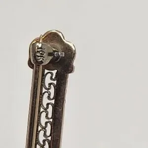 Art Deco antique 10k white gold and blue sapphire filigree bar pin brooch, Edwardian style, open work. Signed Fine Jewelry Delicate Unisex Men Women Romantic