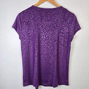 Evan Picone Purple Animal Print Top Womens L Short Sleeve Blouse