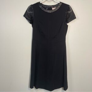 Rebecca Taylor Short Sleeve Black Perforated Leather Sleeved Mini Dress Size 2