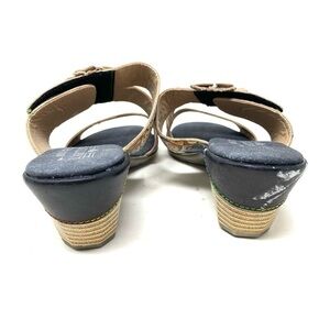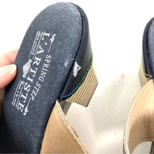 Women's L'Artiste by Spring Step, Classical Sandal. This French looking sandal has a beautiful design with colorful stitching accents, floral details and pretty beads. The hand painted uppers are truly unique and will give you a stunning look. Hand painted leather uppers with colorful stitching, floral and beaded embellishment accents Adjustable hook and loop instep strap Smooth manmade linings Padded footbed for added comfort Artsy chunky block heel with leather trim Traction outsole. Heel Height of 2.25 inches