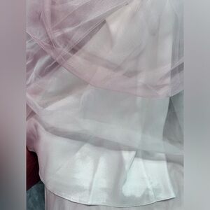 Wedding/prom/evening/gala dress gown lace white pink puff skirt A-line cap sleev