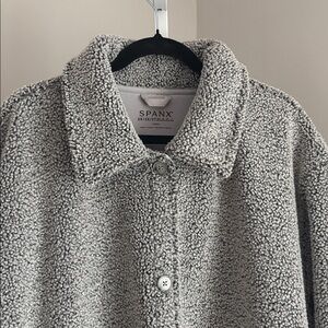 Spanx Luxe Fleece Button Down Shirt Jacket Shacket in Pebble Grey Womens Plus Size 3XL