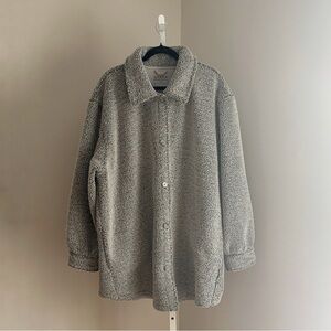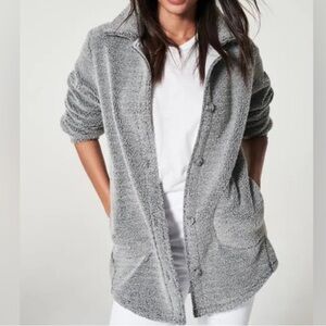 Spanx Pebble Grey Luxe Fleece Button Down Shirt Plus Size Jacket Shacket Sz 3XL