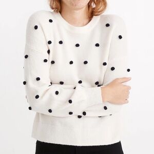 Gorgeous J. Crew Heather Gray Cashmere Navy Bow Detail Polka Dot Crewneck Sweater