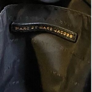 Marc by Marc Jacob’s Elegant black leather handbag with gold accents, perfect for any occasion.3 compartment 3 pockets at interior wall fabric lining hight 12” wide 14.75” depth 6.5” strap drop 8.5” shoulder strap lining minor stains exterior hardware minor discoloration minor marks 28” adjustable The dimensions are based on approximately measurements before placing an order please check take a moment to view all photos using feature for a closer look