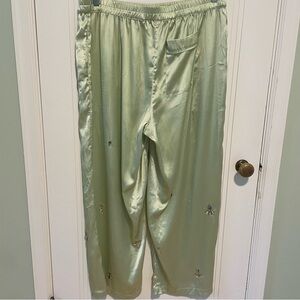 Anthropologie Bejeweled Light Green Satin Silky Pajama Pants