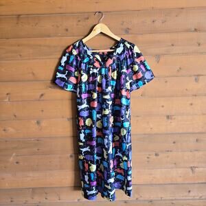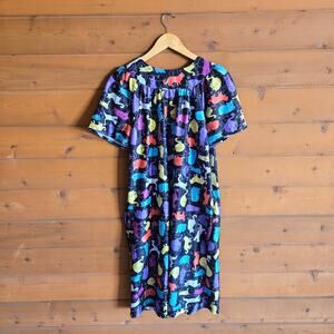 Vintage Anthony Richards Rainbow Cat Mumu House Dress Kitty Short Sleeve Midi M