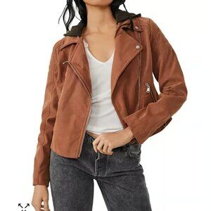 NEW FREE PEOPLE Suede Imitation Hooded Moto Jacket 593JS
