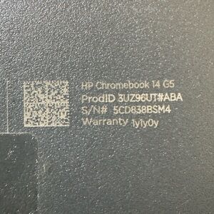 HP Chromebook. Works perfectly . Touchscreen. Shows minor scruffs. Please inspect photos scruffs are shown. Screen has a scratch and other small damage on bottom right corner but its not as noticeable when being used. Charger not included.