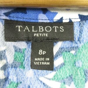 Talbots Floral Midi Dress Blue Green V Neck Long Sleeve Belted Size 8 Petite
