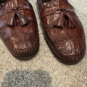 In great condition are these brown genuine crocodile and leather loafers. Originally paid $575