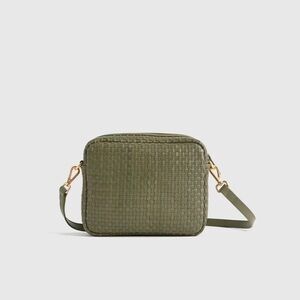 Quince Olive Green Leather Woven Crossbody Bag