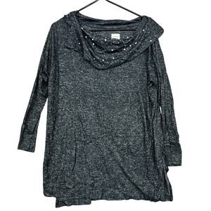 Express Womens Blouse Cream Gray Snakeskin V Neck Zip Front Cap Short Sleeve L