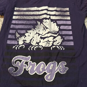 Vintage - Distressed TCU Horn Frogs Purple girls top Size Large Jones & Mitchell
