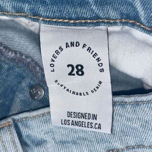 Elevate your denim game with these Lovers + Friends Reece High Rise Rigid Slim Straight Jeans in Palms. The distressed details and button closure add a touch of edgy style to your wardrobe. These jeans are perfect for any occasion, from a night out with friends to a casual day at work.
