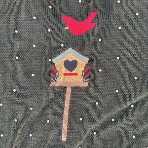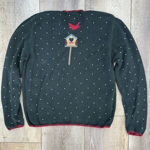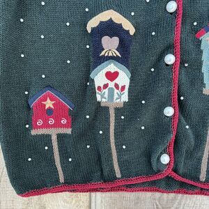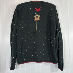 Vintage Womens Winter Sweater Size M Christmas Green 90s Beaded Hand Embroidered
