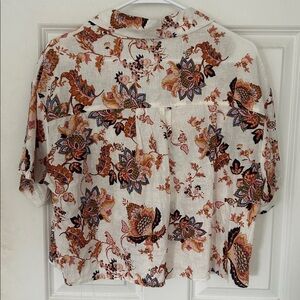 Rachel Roy Linen Blend Cropped Button Up Blouse Size medium, Short Sleeve cream