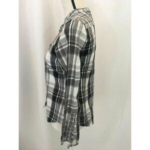 Zara Womens White Gray Black Plaid Long Sleeve Button Down Top Medium
