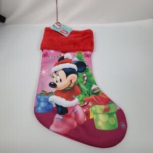 DISNEY MINNIE MOUSE 15" Christmas Stocking Faux Fur Trim Holiday NEW