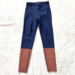 Elevate your workout with these stylish two-tone leggings. Featuring a navy upper and rust lower design, these leggings offer both comfort and style. Perfect for any active lifestyle.