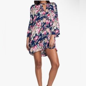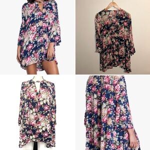 UMGEE Ashley Floral Swing Dress Tunic Length Bell Sleeves Keyhole Neckline.