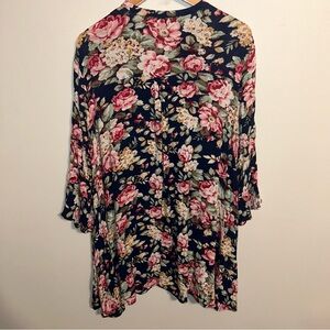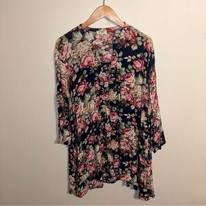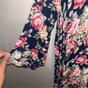 Umgee Navy Floral Trapeze Swing Cut Bell Sleeve Dress / Tunic Size L Large