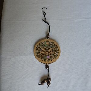 Brand new! This intricate butterfly suncatcher is made from a gorgeous stained, laser cut wood with repurposed DVD. Comes with an S hook for easy hanging.