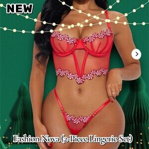 New Fashion Nova Swirling For You Bustier Set – Red (2-Piece Lingerie Set) size Small