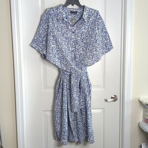 Lane Bryant Wrap Bodice Shirt Dress Lila Blue White Ditzy Floral 28/4X NWT