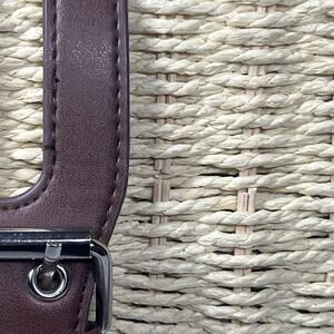 Woven Rattan Straw Crossbody Buckle Bag Beige Tan Hinge Picnic Beach Vacation * Appears gently used. There's one sign of wear - a couple of broken straw pieces. See photos for details.