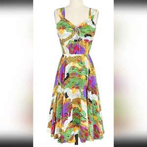NWT, silky-smooth cold rayon, wide strap L'Amour dress in Tropical Cranes size 14.