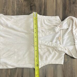 This chic sleeveless dress features a comfortable hood and a stylish drawstring waist, perfect for casual outings. The soft white color adds a touch of elegance to your child's wardrobe.