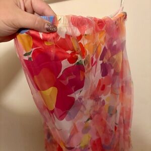 Pink yellow blue magenta fuschia green white multicolor flower floral mini midi sleeveless strapless mini short bodycon pretty event occasion evening wedding party fun funky colorful feminine demure spring summer