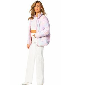 Juicy Couture Avalon Logo Sleeve Cotton Candy Puffer Jacket Pastel Tie-Dye Coat
