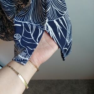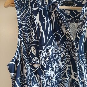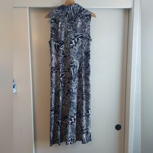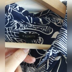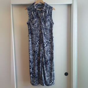 Talbots Floral Button Front Knit Maxi Dress L NAVY BLUE-WHITE RESORTWEAR