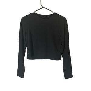 Wild Fable Black Long Sleeve Cotton Pullover Cropped Top Women Sz XS