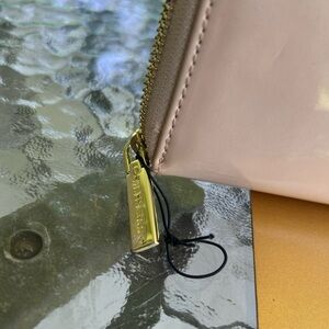 This elegant Anne Klein wallet in a soft pink hue features a sleek, structured design with a metallic zipper detail. Crafted from smooth leather, it offers a minimalist aesthetic perfect for any occasion. The wallet's charm lies in its simplicity and refined style.