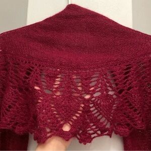 New Crochet Shawl Wrap Scarf Red Burgundy Festival Cottagecore Christmas Holiday