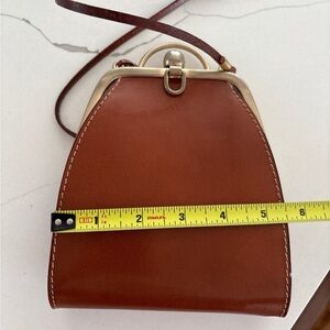 Vintage Brown Leather Coin Purse Crossbody kiss lock