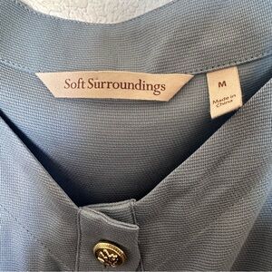 Soft Surroundings Sky Blue Bridgette Cold Shoulder Tencel Maxi Dress with button-down front and high low hem. 2 side pockets. 100 % Tencel Lyocell. Women’s size medium. 18.5” from armpit to armpit laying flat. Waist 32”. 48” long from shoulder to hem in front and 6.5” longer in back. Great Preowned Condition. No flaws.