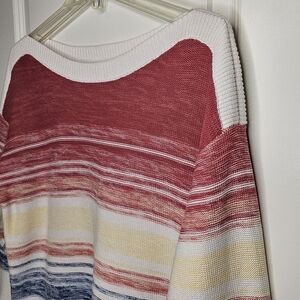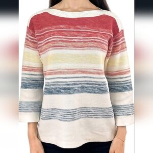 Brittany Black 100% Cotton Butter Yellow Red Popover Coastal Lagenlook Sweater L