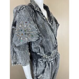 Vintage Jumpsuit – Women’s Studded Wrap Style, Size M Acid Wash Gray