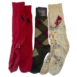 Polo Ralph Lauren Socks Men's Size Argyle Dress Red Nautical Cotton Blend set 3