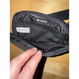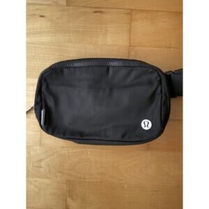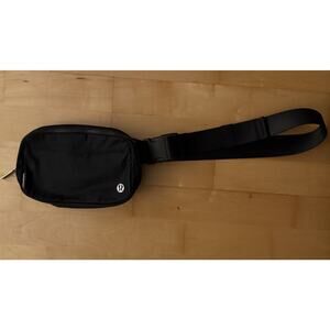 The Lululemon Everywhere Belt Bag 1L in Black is a stylish and functional accessory perfect for travel and casual occasions. This small rectangular bag features a zip closure and a black crossbody strap for easy carrying. The exterior is made of durable polyester and nylon materials with a matte finish, while the interior is lined with black polyester. With its practical pockets and zip-around feature, this belt bag is a versatile addition to any wardrobe, offering both fashion and functionality.