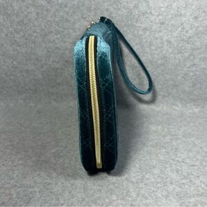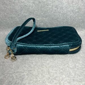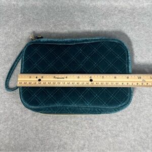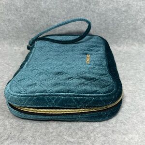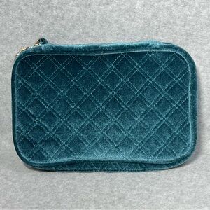 Bagsmart Velvet Jewelry Organizer Travel Bag Quilted Teal Wristlet Gold Hardware