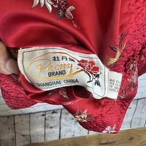 VTG PEONY BRAND Shanghai China Silk Jacket Blazer Asian Kimono Reversible Sz MED in a beautiful red/white reversible style.