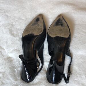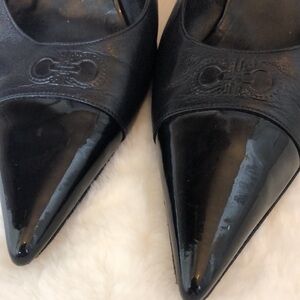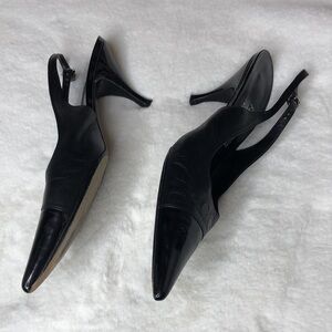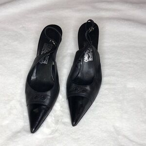 SALVATORE FERRAGAMO Black Leather Contrast Toe Pointed Slingback Heels Size 9.5