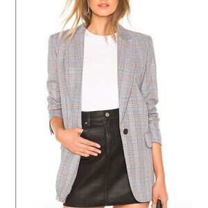 NWT Equipment Jeanne Longline Blazer Blue Glen Plaid One Button Wool-Blend 8